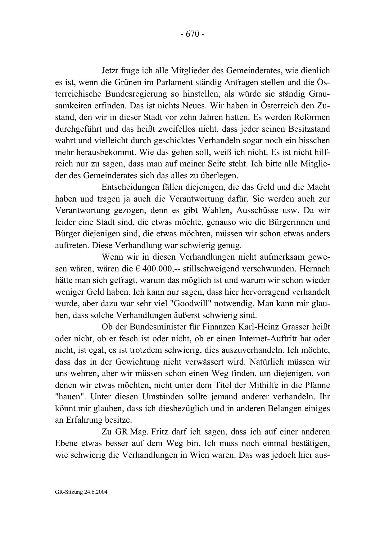 Wenn wir in diesen Verhandlungen nicht aufmerksam gewesen wären, wären die € 400.000,-- stillschweigend verschwunden. Hernach
