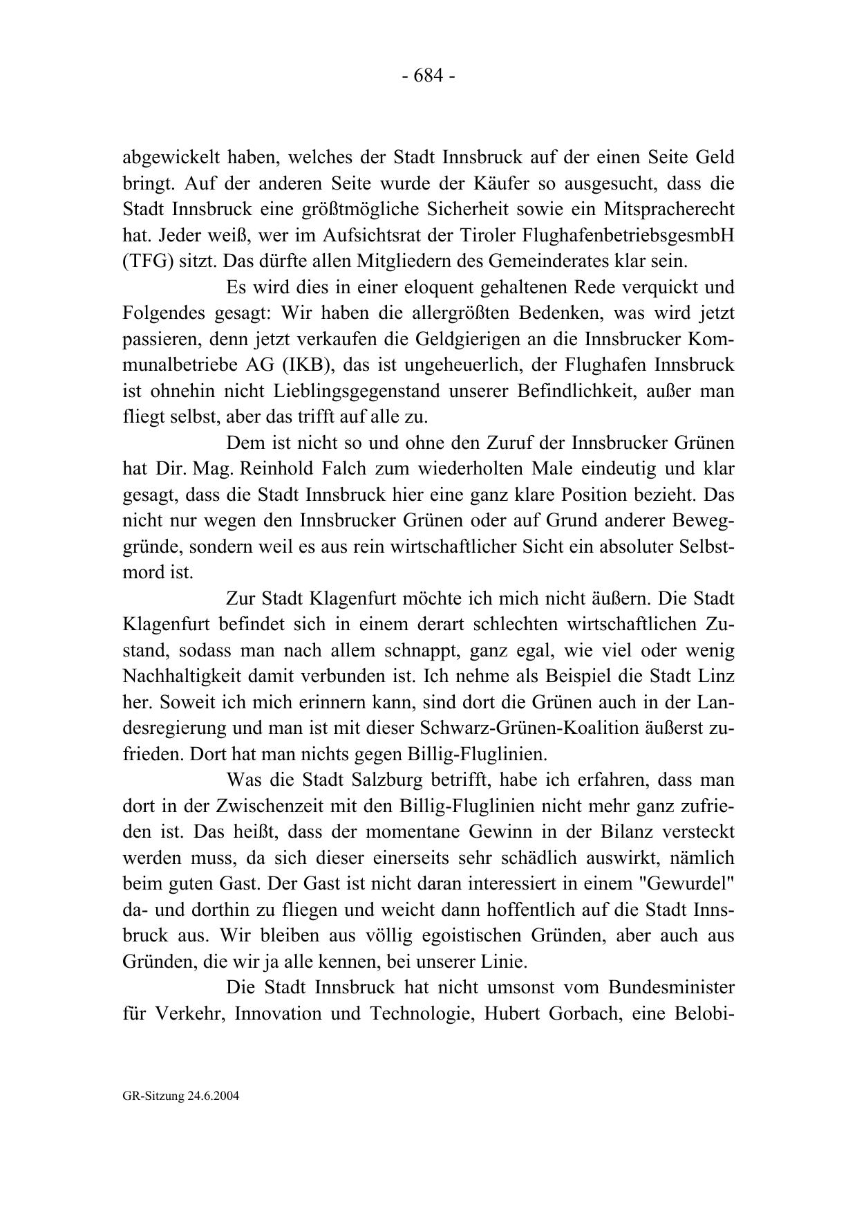 da- und dorthin zu fliegen und weicht dann hoffentlich auf die Stadt Innsbruck aus. Wir bleiben aus völlig egoistischen Gründen, aber auch aus