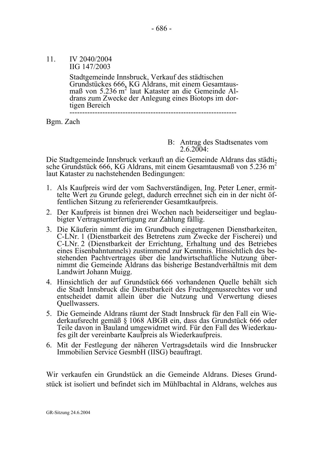 Die Stadtgemeinde Innsbruck verkauft an die Gemeinde Aldrans das städti-2