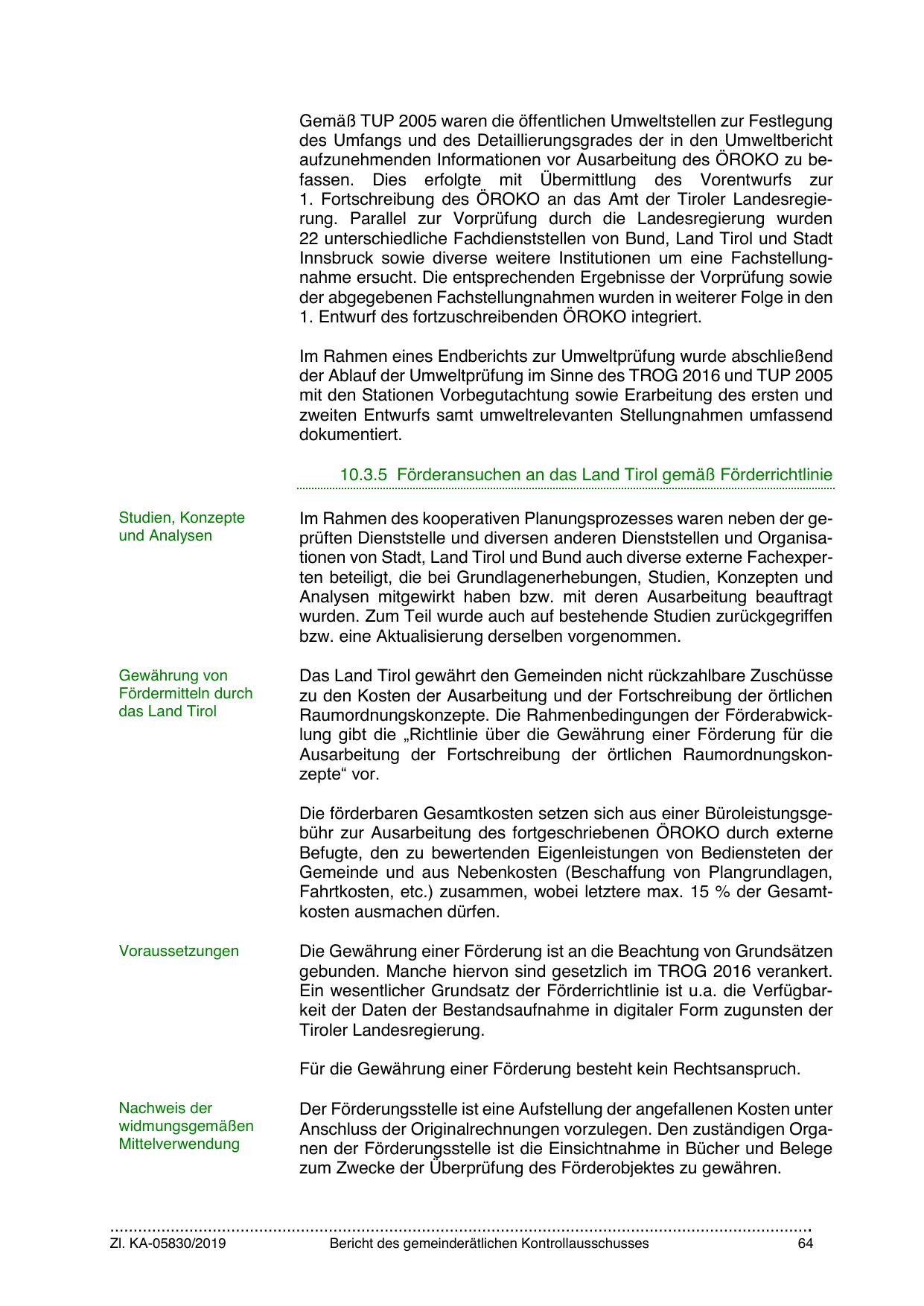 1. Fortschreibung des ÖROKO an das Amt der Tiroler Landesregierung. Parallel zur Vorprüfung durch die Landesregierung wurden