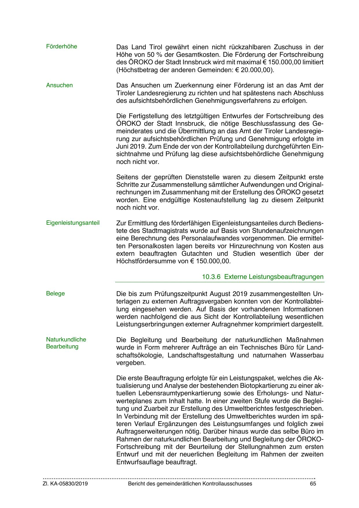 ÖROKO der Stadt Innsbruck, die nötige Beschlussfassung des Gemeinderates und die Übermittlung an das Amt der Tiroler Landesregierung zur aufsichtsbehördlichen Prüfung und Genehmigung erfolgte im