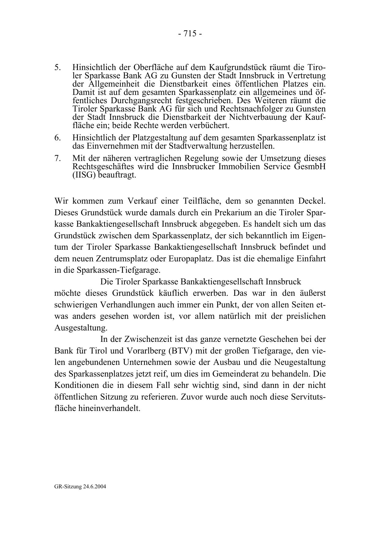Grundstück zwischen dem Sparkassenplatz, der sich bekanntlich im Eigentum der Tiroler Sparkasse Bankaktiengesellschaft Innsbruck befindet und