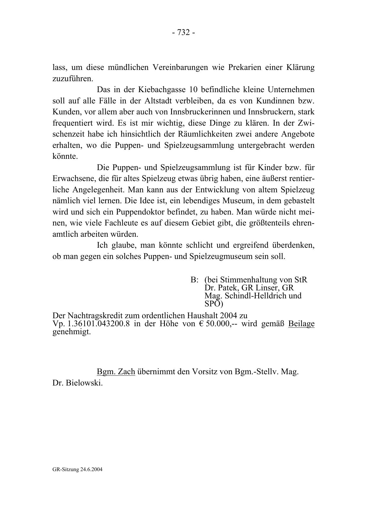 Der Nachtragskredit zum ordentlichen Haushalt 2004 zu
