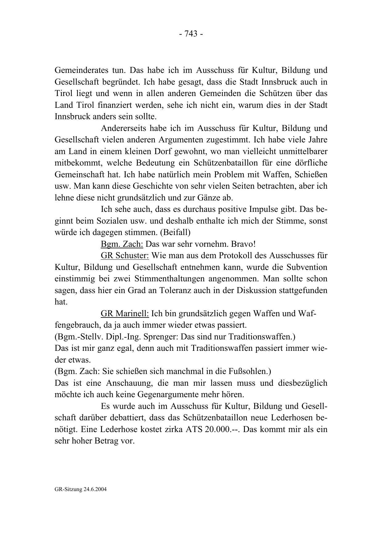 Es wurde auch im Ausschuss für Kultur, Bildung und Gesellschaft darüber debattiert, dass das Schützenbataillon neue Lederhosen benötigt. Eine Lederhose kostet zirka ATS 20.000.--. Das kommt mir als ein