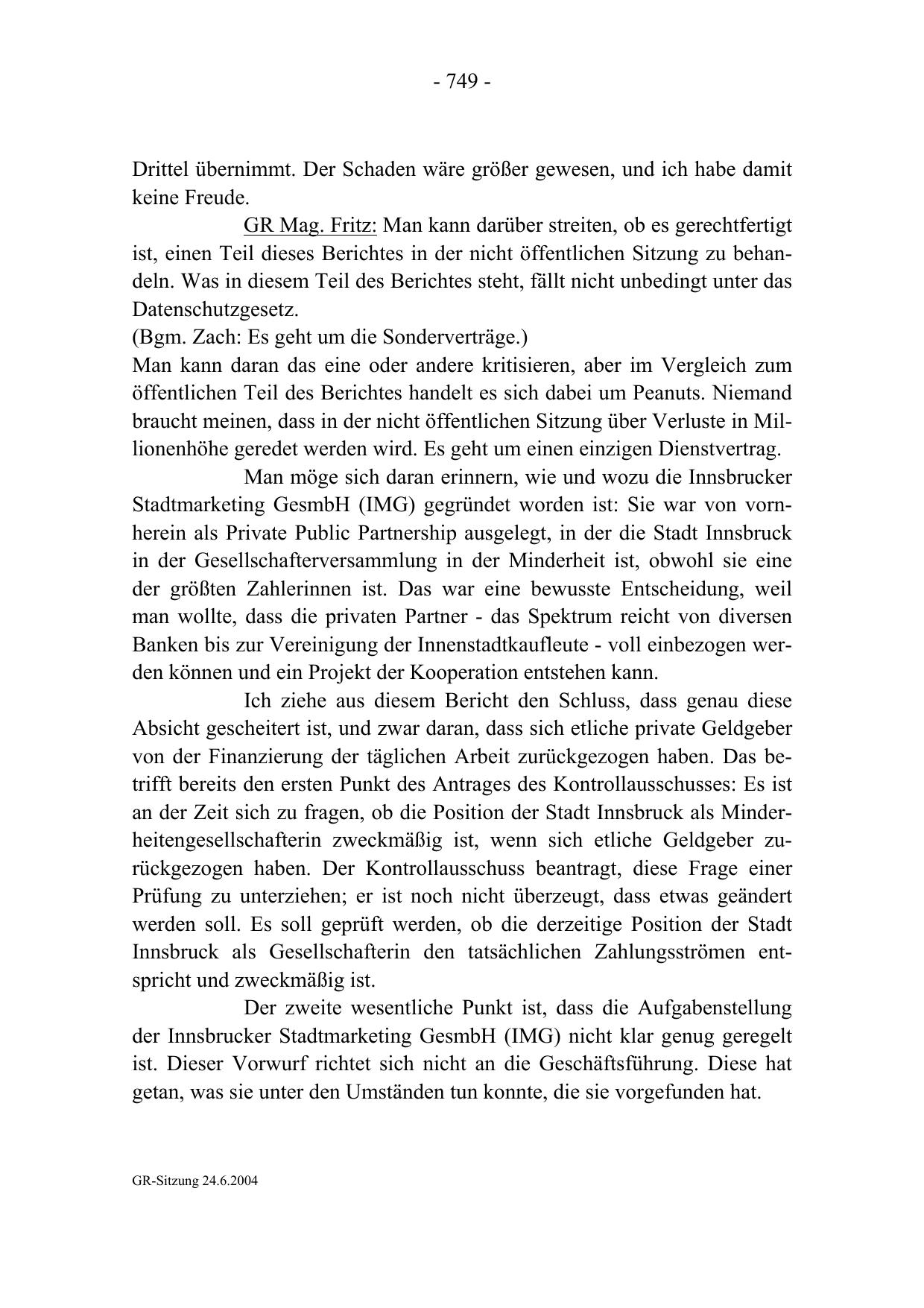 an der Zeit sich zu fragen, ob die Position der Stadt Innsbruck als Minderheitengesellschafterin zweckmäßig ist, wenn sich etliche Geldgeber zurückgezogen haben. Der Kontrollausschuss beantragt, diese Frage einer