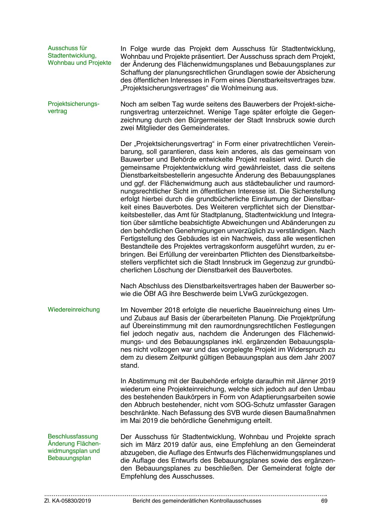 Bestandteile des Projektes vertragskonform ausgeführt wurden, zu erbringen. Bei Erfüllung der vereinbarten Pflichten des Dienstbarkeitsbestellers verpflichtet sich die Stadt Innsbruck im Gegenzug zur grundbücherlichen Löschung der Dienstbarkeit des Bauverbotes.