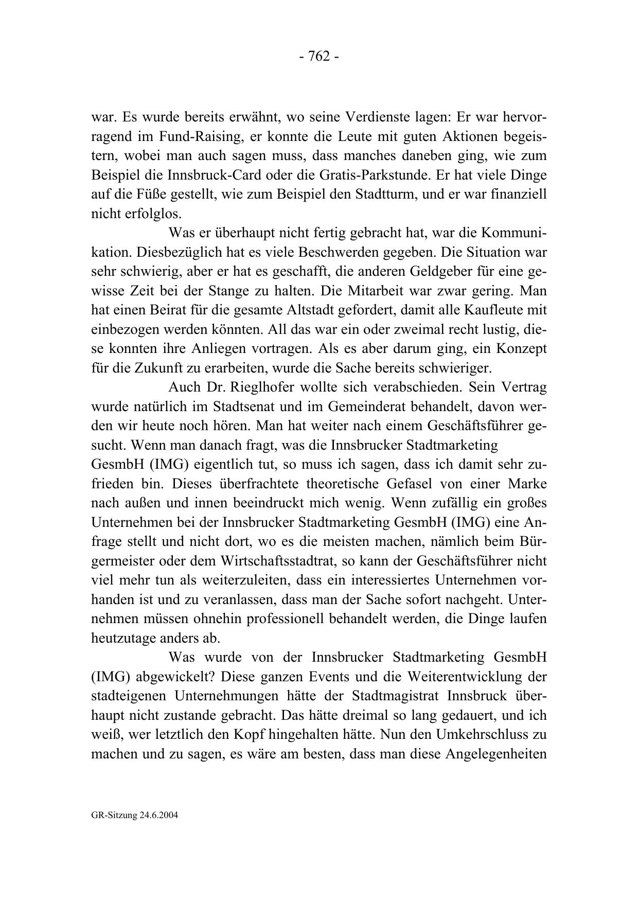 wurde natürlich im Stadtsenat und im Gemeinderat behandelt, davon werden wir heute noch hören. Man hat weiter nach einem Geschäftsführer gesucht. Wenn man danach fragt, was die Innsbrucker Stadtmarketing