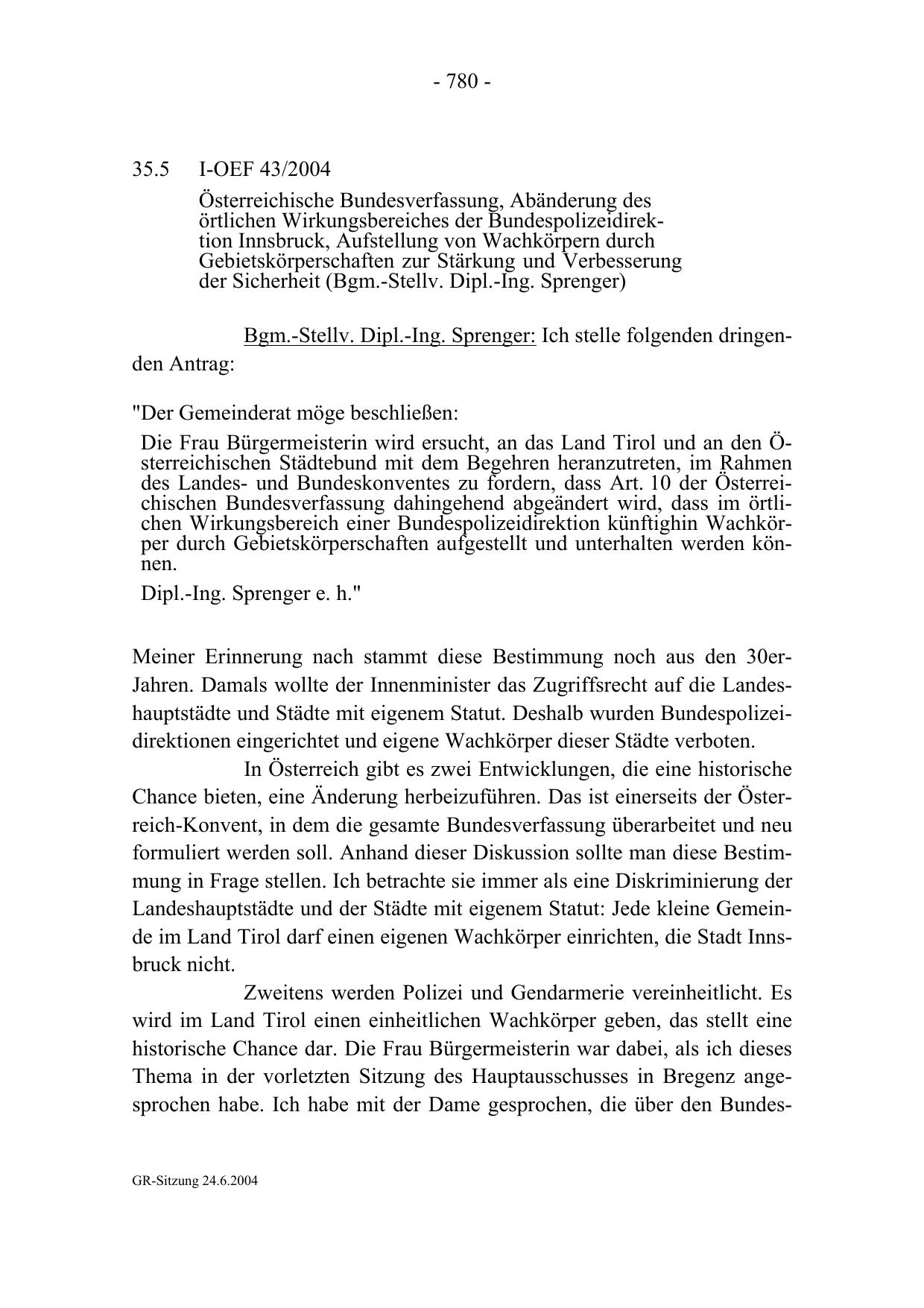 Bgm.-Stellv. Dipl.-Ing. Sprenger: Ich stelle folgenden dringen-