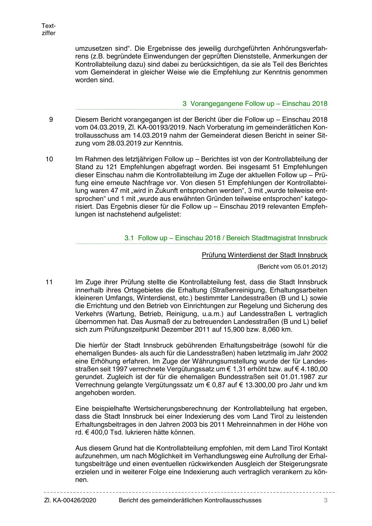 3.1 Follow up – Einschau 2018 / Bereich Stadtmagistrat Innsbruck