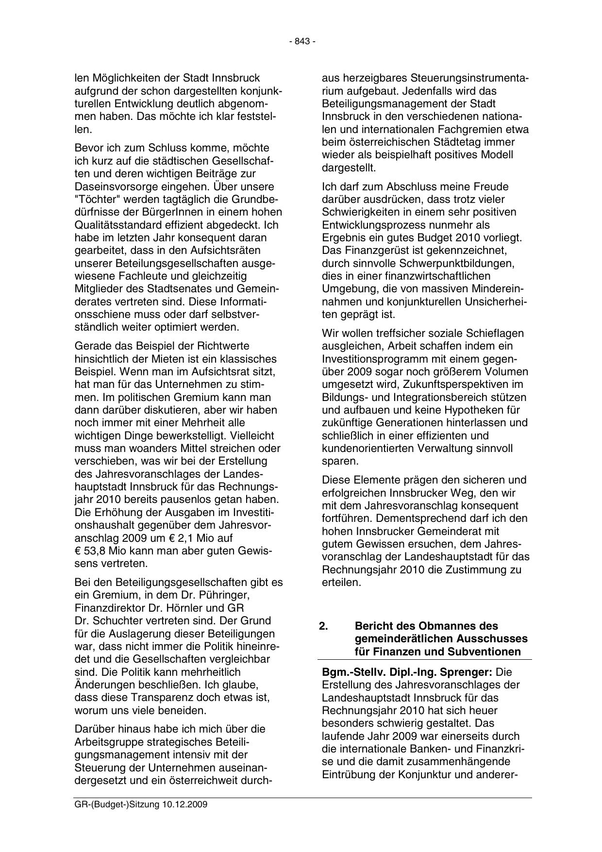 Steuerung der Unternehmen auseinandergesetzt und ein österreichweit durchGR-(Budget-)Sitzung 10.12.2009
