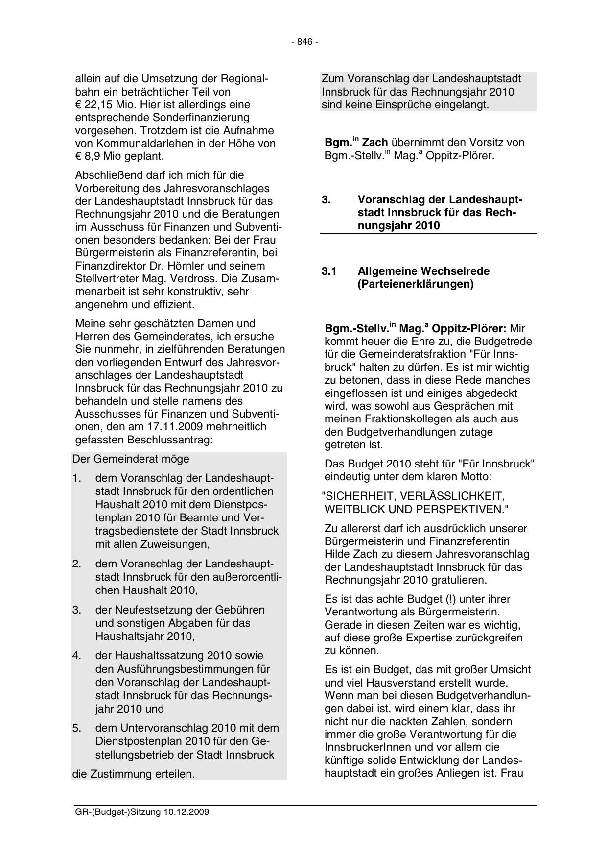 GR-(Budget-)Sitzung 10.12.2009