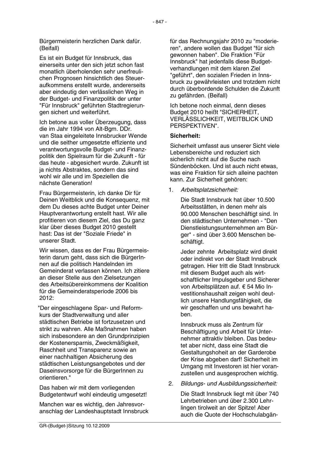 Manchen war es wichtig, den Jahresvoranschlag der Landeshauptstadt Innsbruck