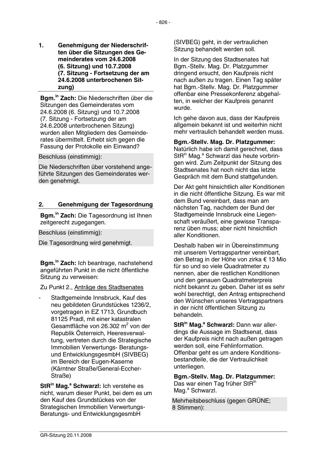 Stadtgemeinde Innsbruck eine Liegenschaft veräußert, eine gewisse Transparenz üben muss; aber nicht hinsichtlich