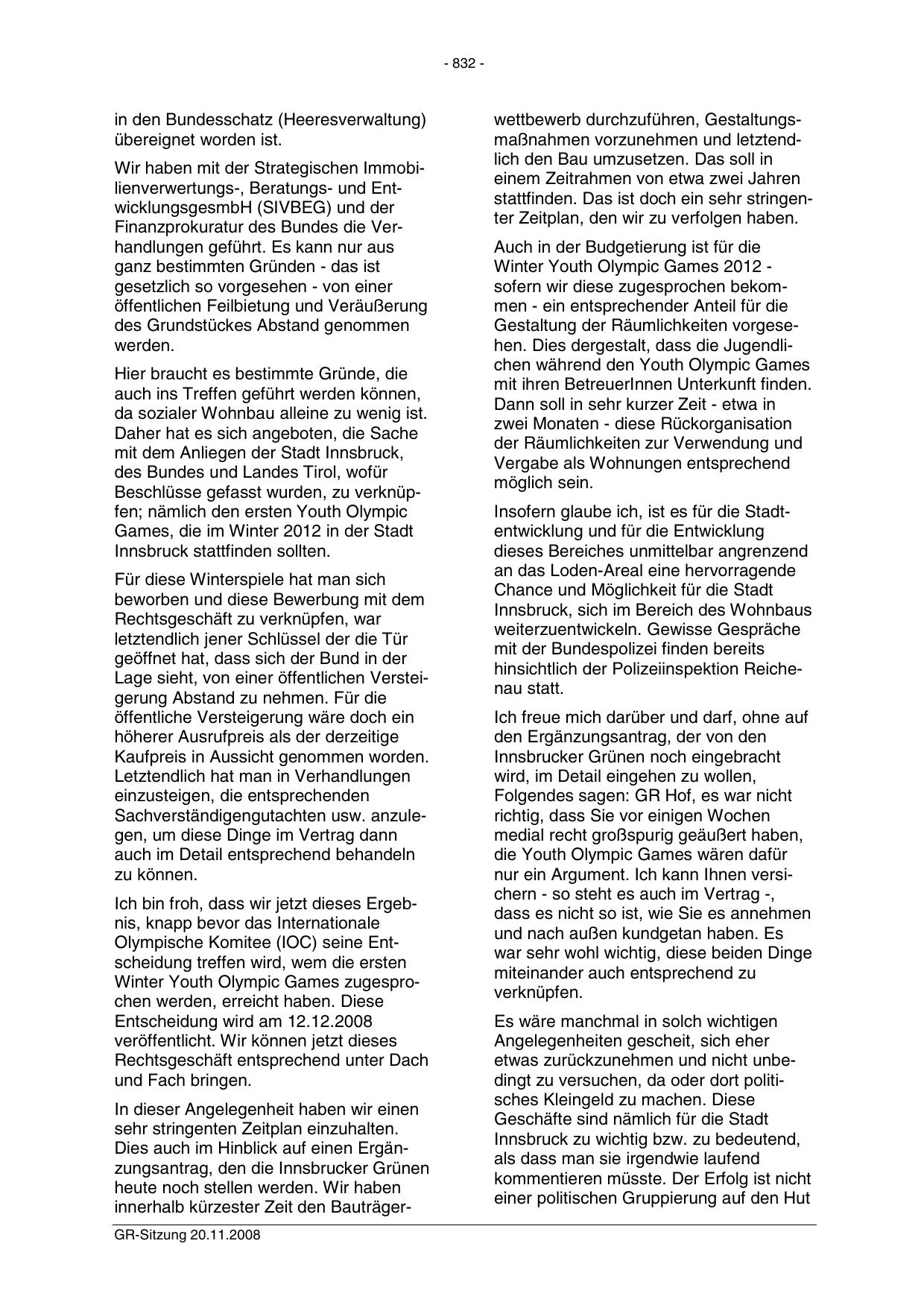innerhalb kürzester Zeit den BauträgerGR-Sitzung 20.11.2008