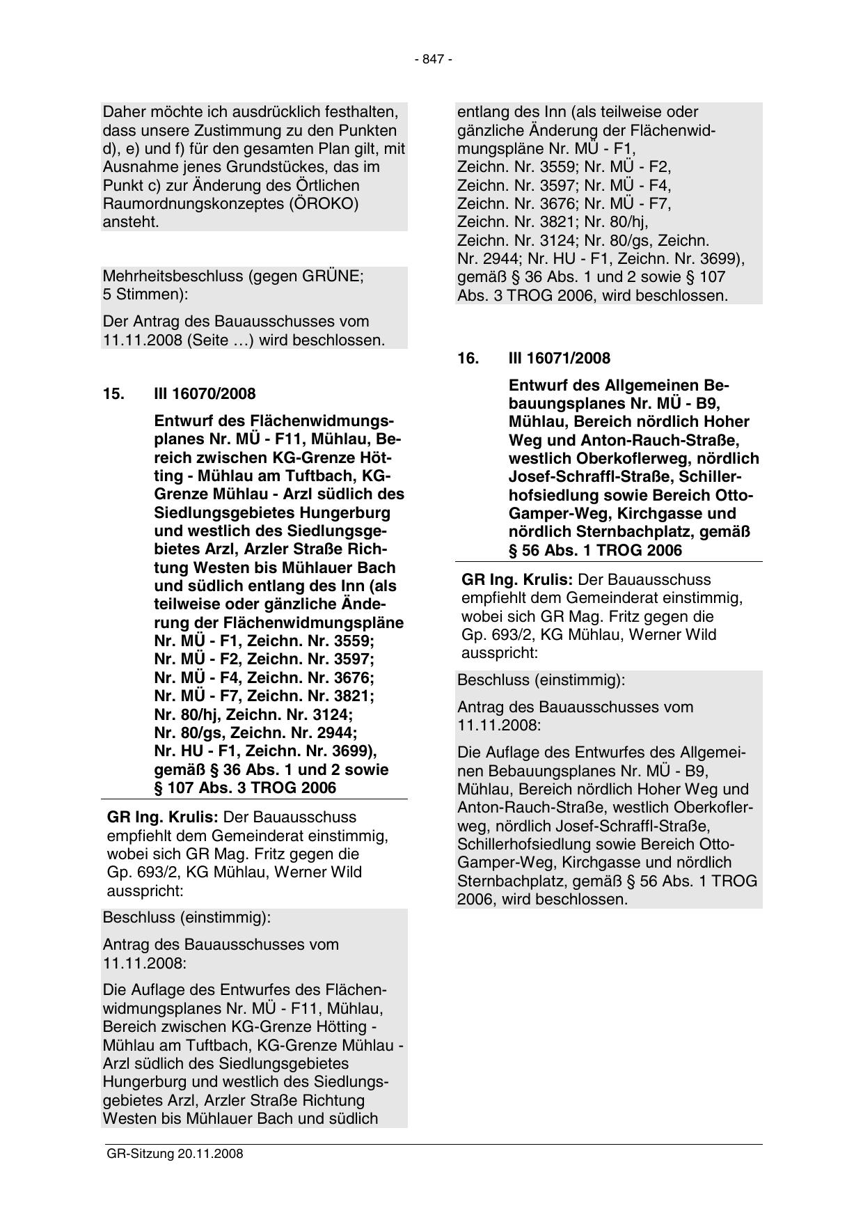 Die Auflage des Entwurfes des Flächenwidmungsplanes Nr. MÜ - F11, Mühlau,