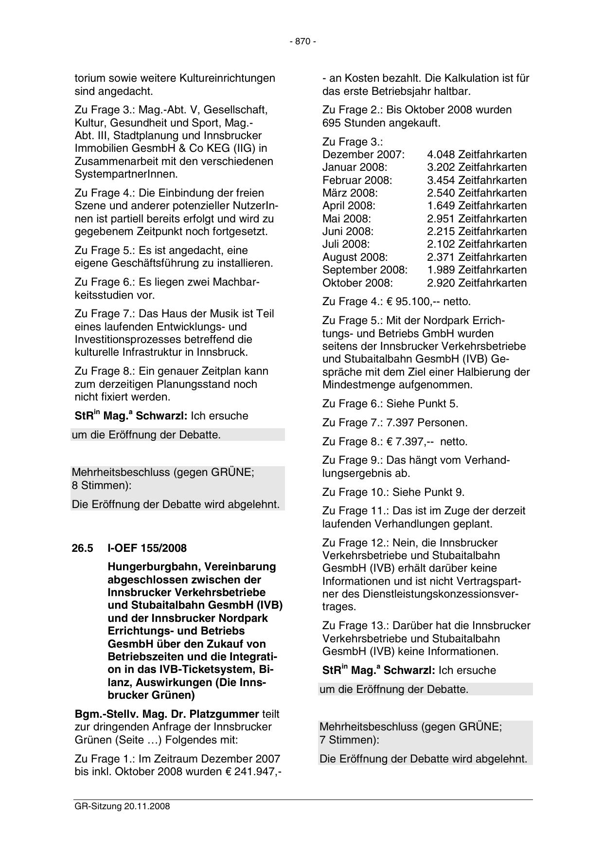 bis inkl. Oktober 2008 wurden € 241.947,GR-Sitzung 20.11.2008