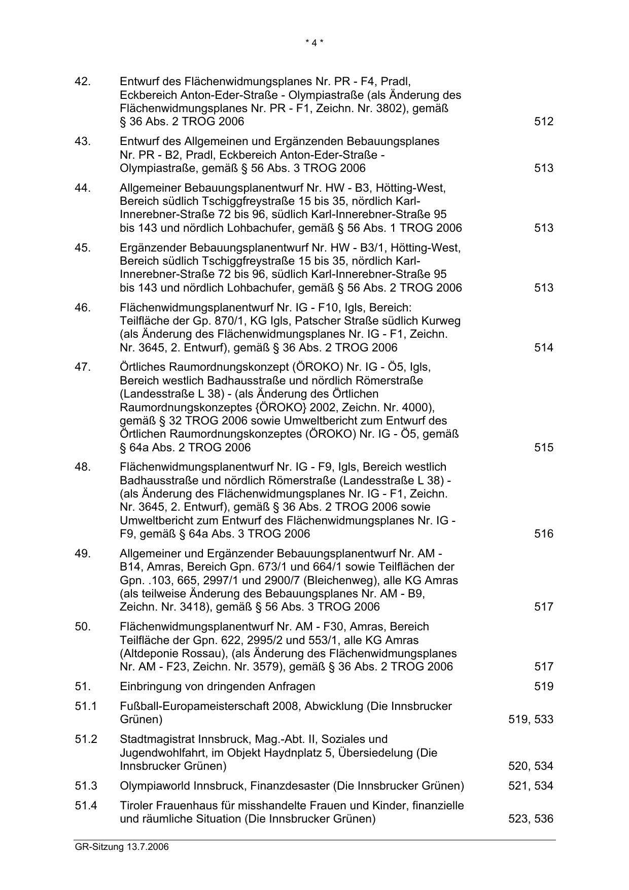 Entwurf des Flächenwidmungsplanes Nr. PR - F4, Pradl,