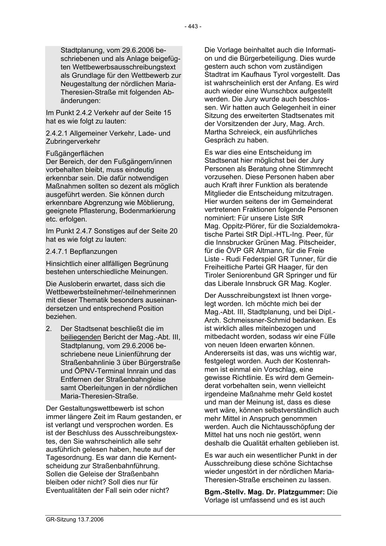 Mag. Oppitz-Plörer, für die Sozialdemokratische Partei StR Dipl.-HTL-Ing. Peer, für