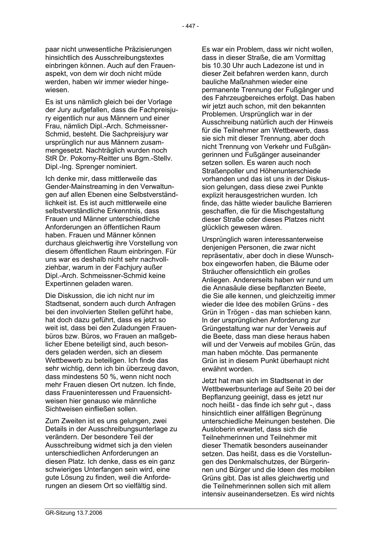 weit ist, dass bei den Zuladungen Frauenbüros bzw. Büros, wo Frauen an maßgeblicher Ebene beteiligt sind, auch besonders geladen werden, sich an diesem
