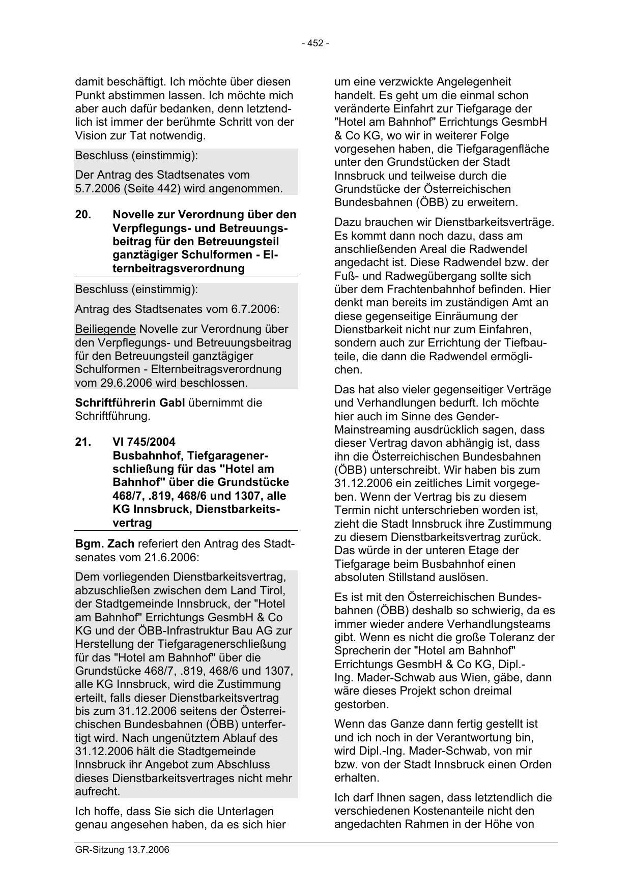 Bgm. Zach referiert den Antrag des Stadtsenates vom 21.6.2006: