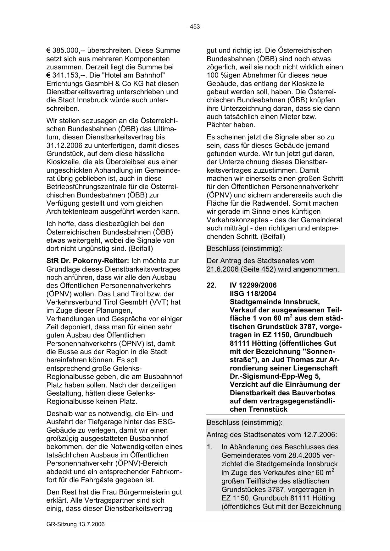Gemeinderates vom 28.4.2005 verzichtet die Stadtgemeinde Innsbruck
