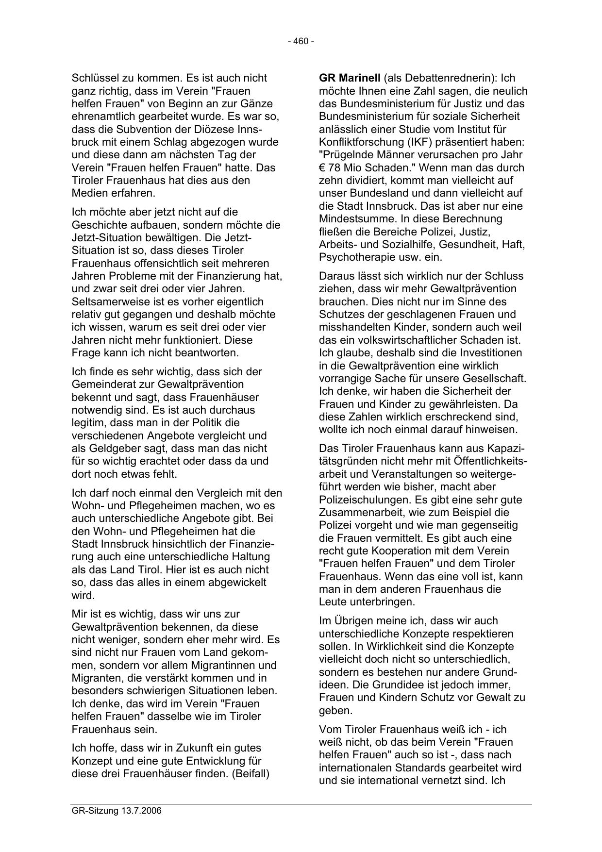 Stadt Innsbruck hinsichtlich der Finanzierung auch eine unterschiedliche Haltung