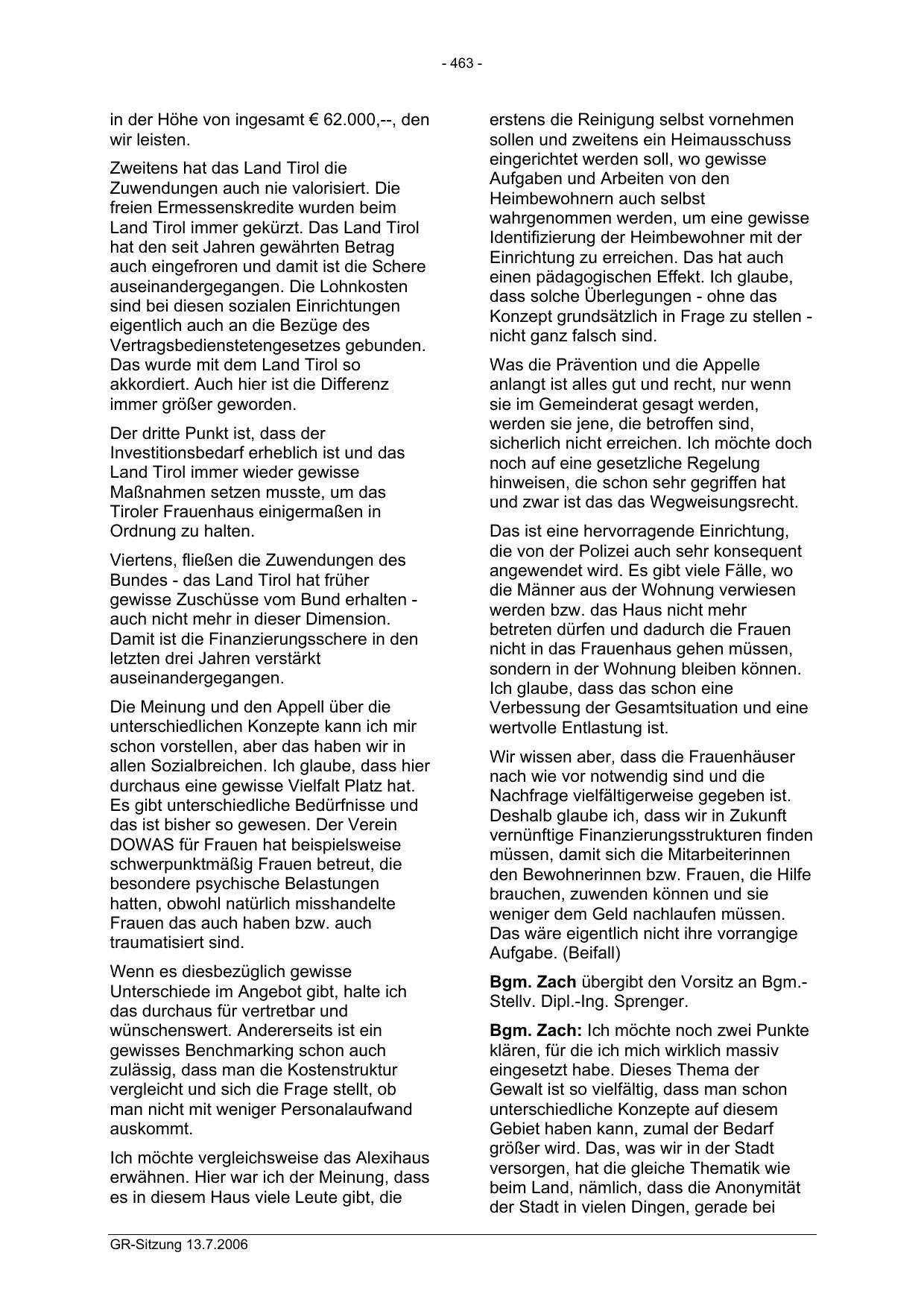 Bgm. Zach: Ich möchte noch zwei Punkte