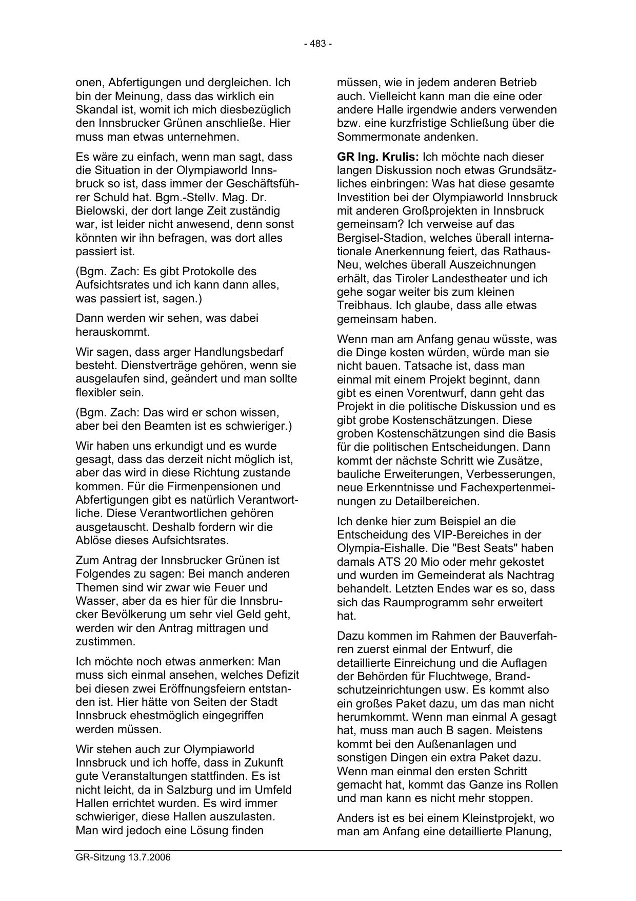 die Situation in der Olympiaworld Innsbruck so ist, dass immer der Geschäftsführer Schuld hat. Bgm.-Stellv. Mag. Dr.