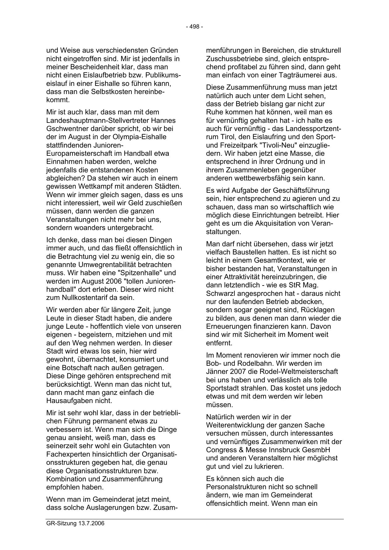 auch für vernünftig - das Landessportzentrum Tirol, den Eislaufring und den Sportund Freizeitpark "Tivoli-Neu" einzugliedern. Wir haben jetzt eine Masse, die