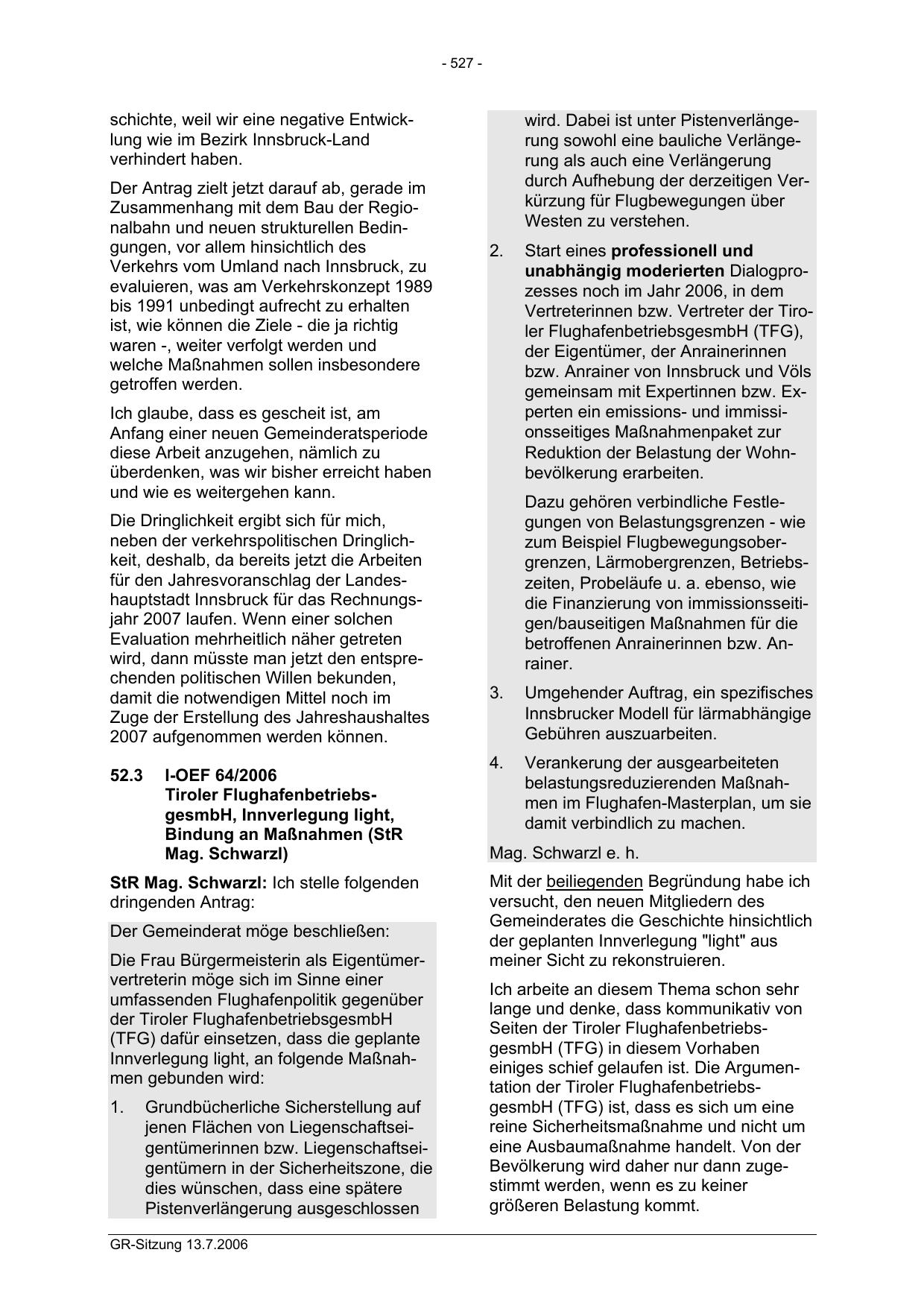 für den Jahresvoranschlag der Landeshauptstadt Innsbruck für das Rechnungsjahr 2007 laufen. Wenn einer solchen