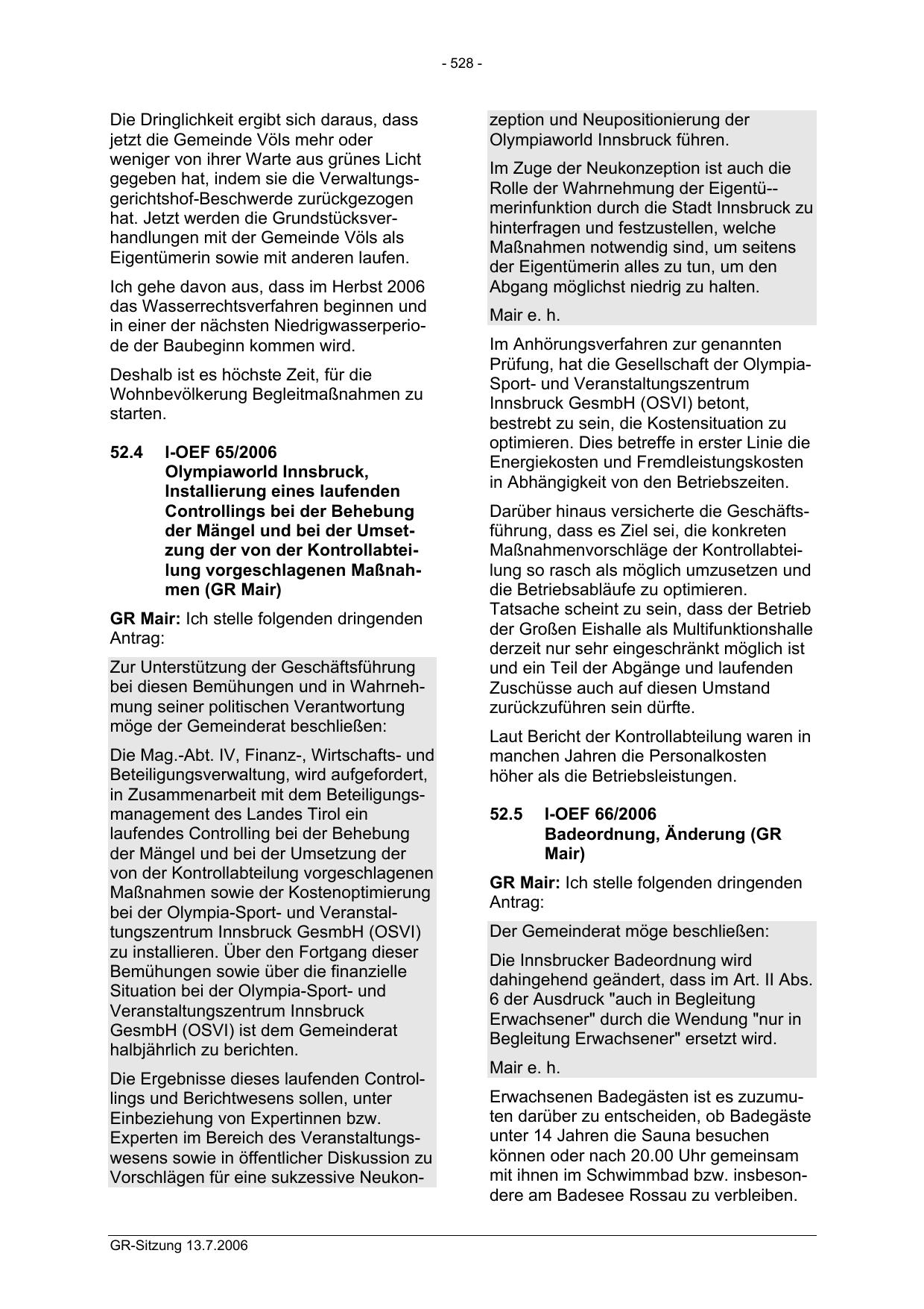 der Mängel und bei der Umsetzung der von der Kontrollabteilung vorgeschlagenen Maßnahmen (GR Mair)