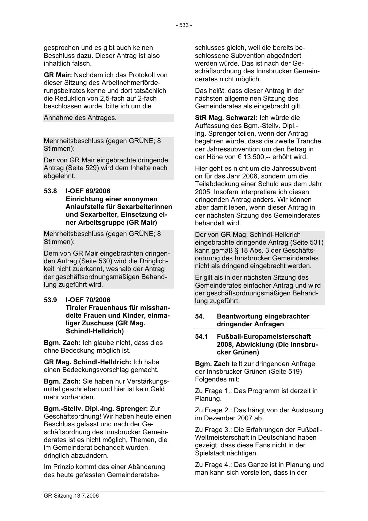 Beschluss gefasst und nach der Geschäftsordnung des Innsbrucker Gemeinderates ist es nicht möglich, Themen, die