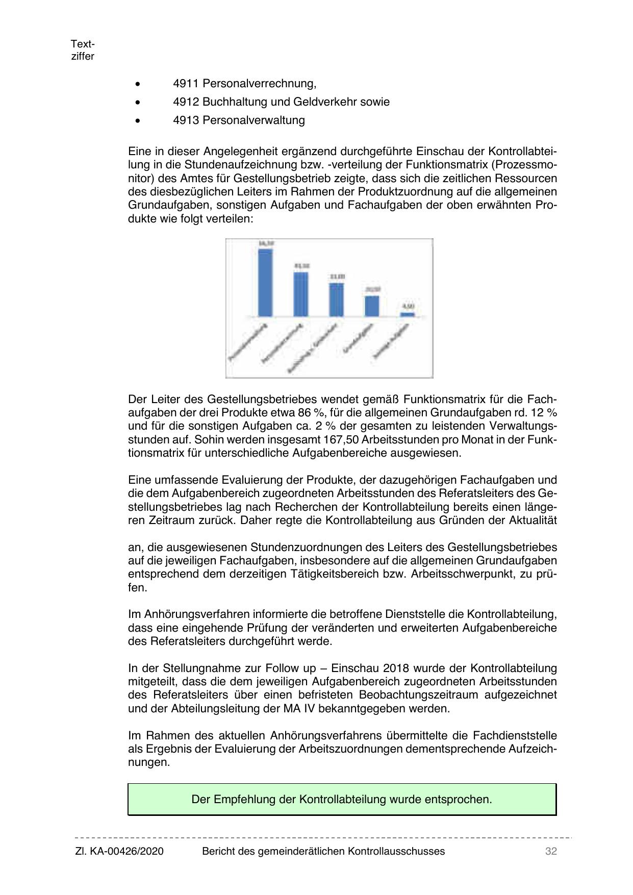 Eine in dieser Angelegenheit ergänzend durchgeführte Einschau der Kontrollabteilung in die Stundenaufzeichnung bzw. -verteilung der Funktionsmatrix (Prozessmonitor) des Amtes für Gestellungsbetrieb zeigte, dass sich die zeitlichen Ressourcen