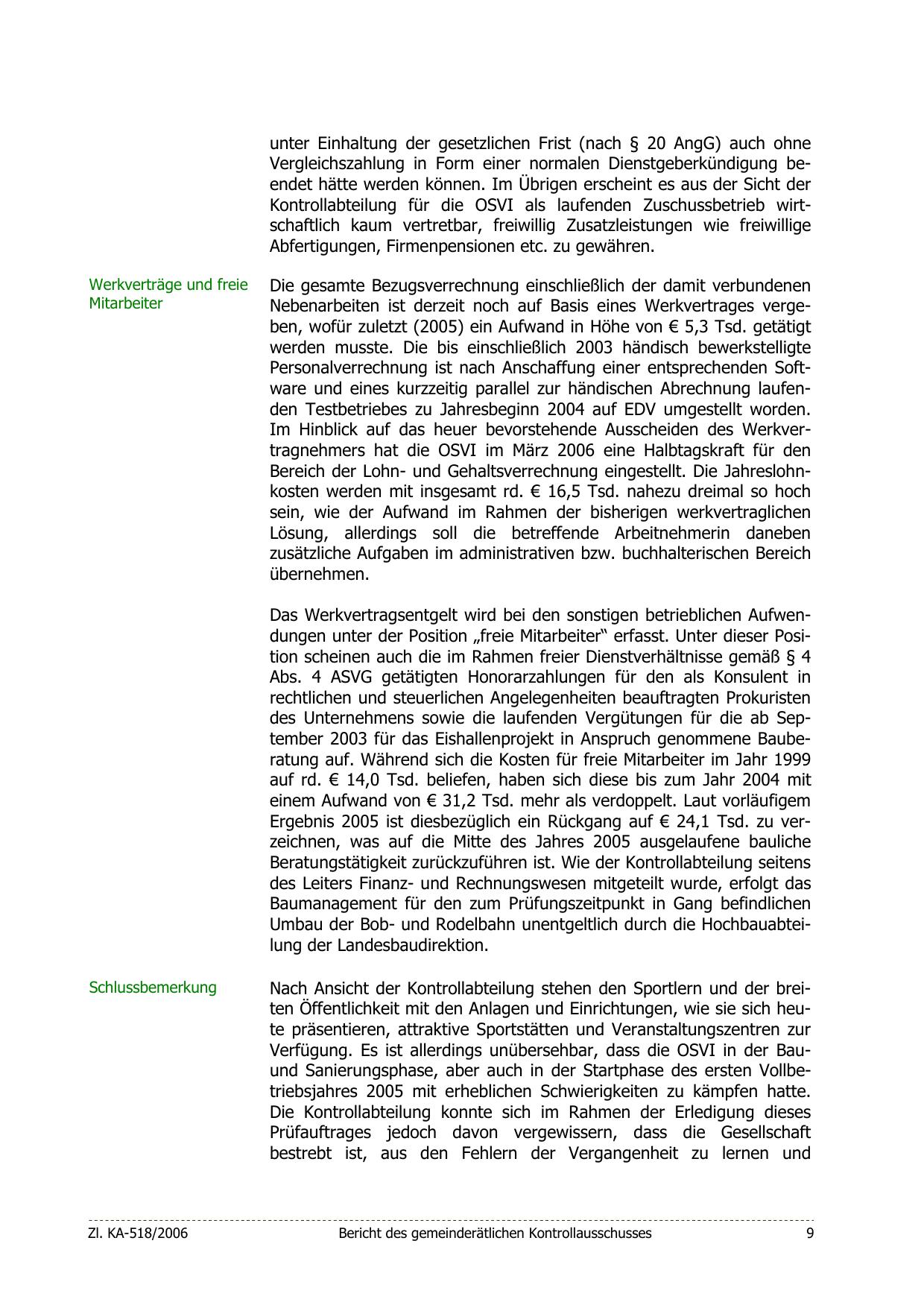 Nebenarbeiten ist derzeit noch auf Basis eines Werkvertrages vergeben, wofür zuletzt (2005) ein Aufwand in Höhe von € 5,3 Tsd. getätigt