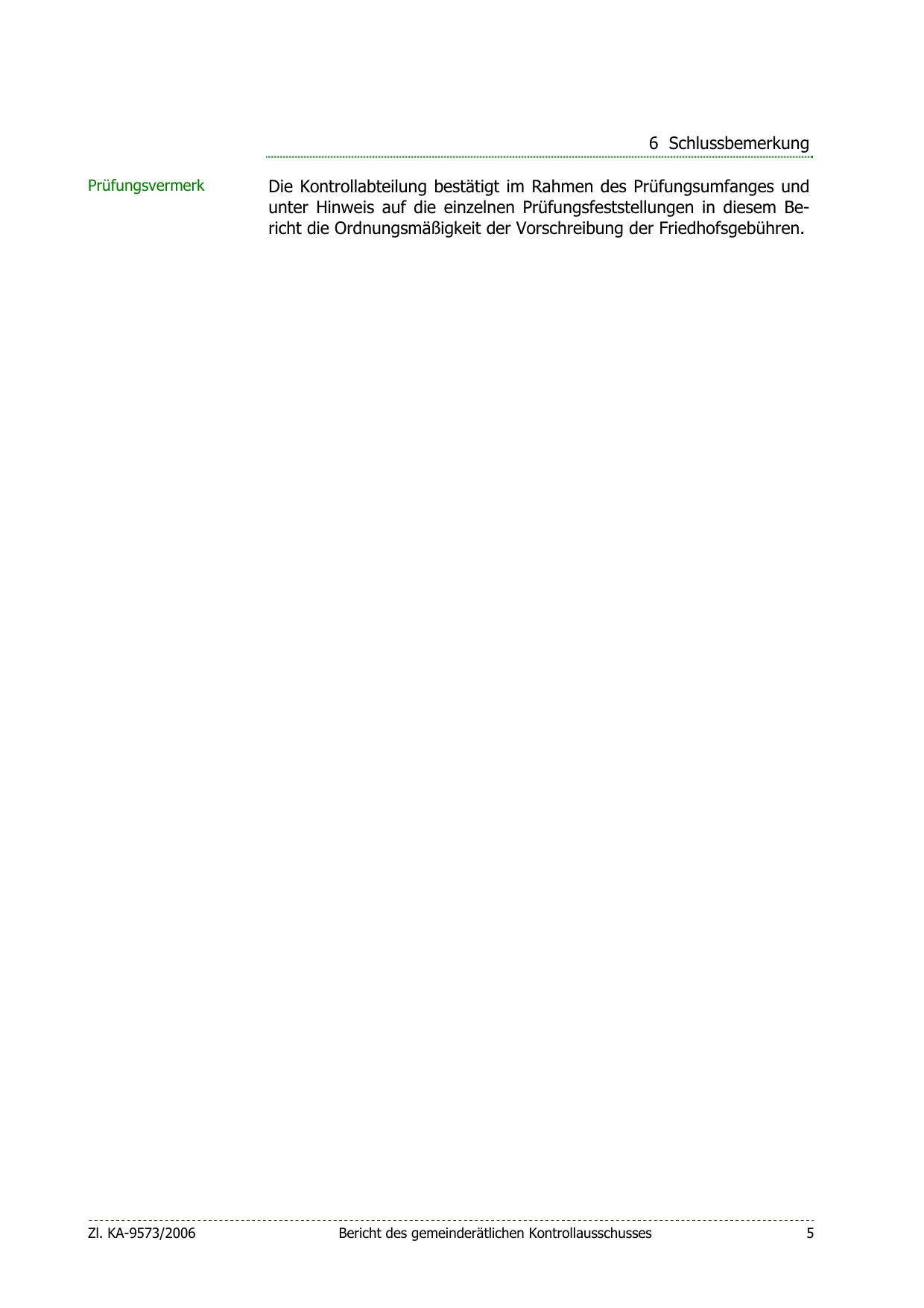 unter Hinweis auf die einzelnen Prüfungsfeststellungen in diesem Bericht die Ordnungsmäßigkeit der Vorschreibung der Friedhofsgebühren.