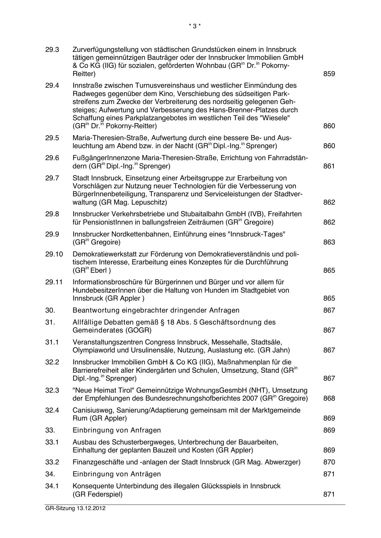 Stadt Innsbruck, Einsetzung einer Arbeitsgruppe zur Erarbeitung von