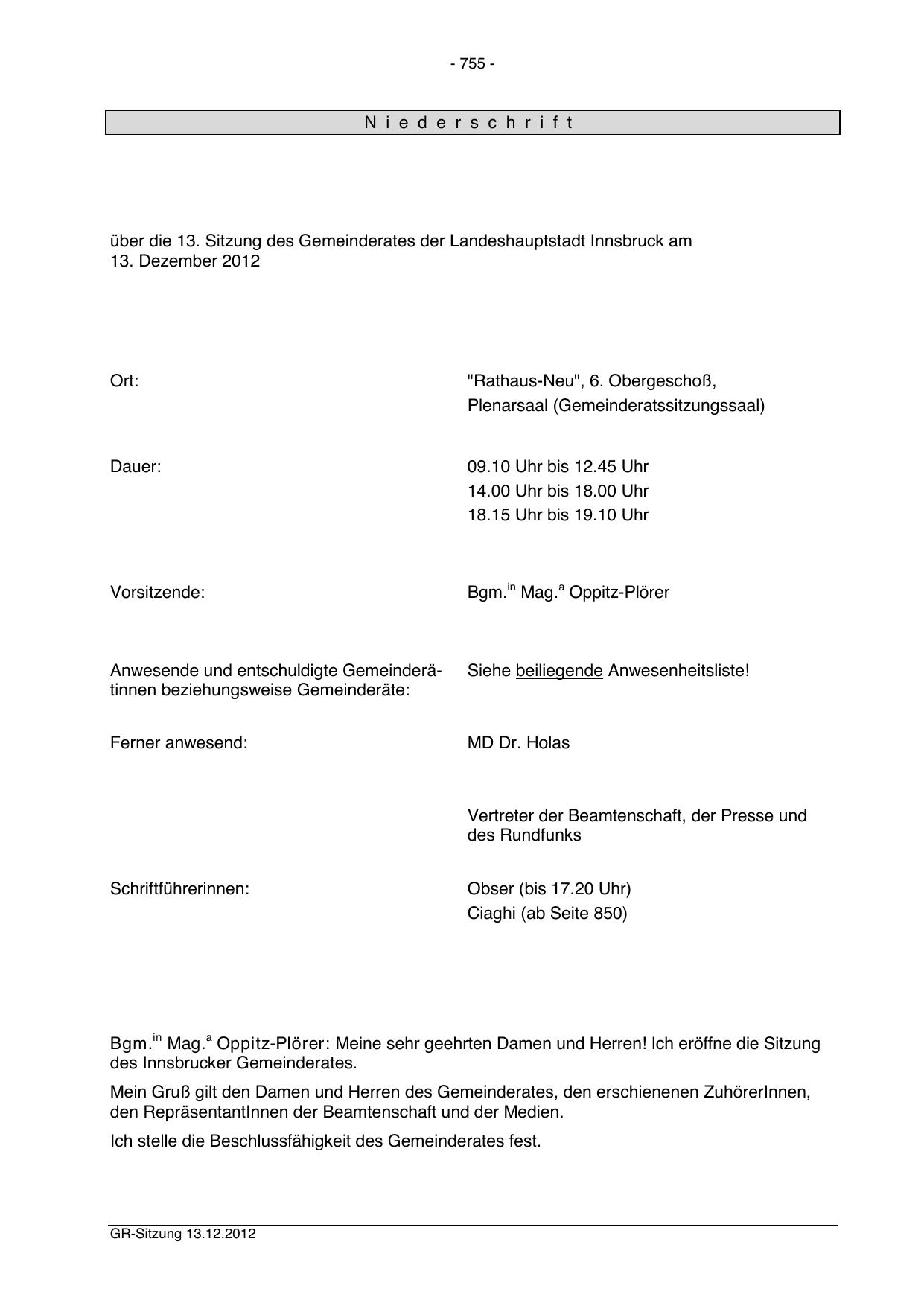 über die 13. Sitzung des Gemeinderates der Landeshauptstadt Innsbruck am