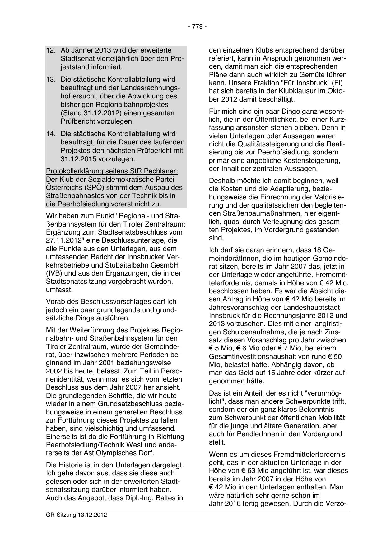 nicht die Qualitätssteigerung und die Realisierung bis zur Peerhofsiedlung, sondern
