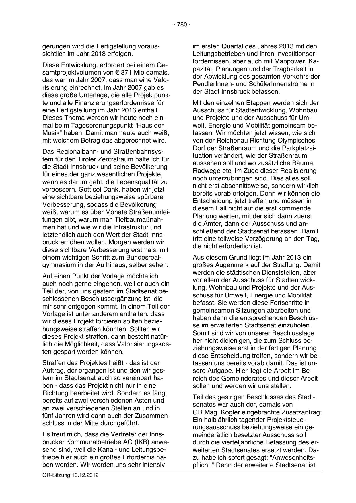 letztendlich auch den Wert der Stadt Innsbruck erhöhen wollen. Morgen werden wir