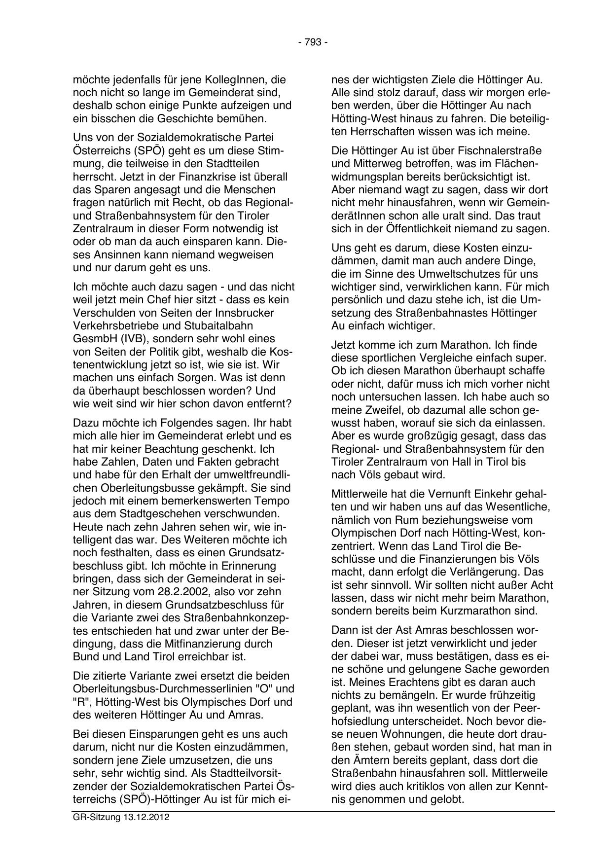sehr, sehr wichtig sind. Als Stadtteilvorsitzender der Sozialdemokratischen Partei Österreichs (SPÖ)-Höttinger Au ist für mich eiGR-Sitzung 13.12.2012