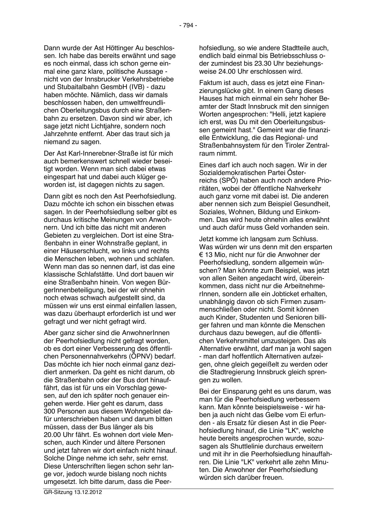 Dann wurde der Ast Höttinger Au beschlossen. Ich habe das bereits erwähnt und sage