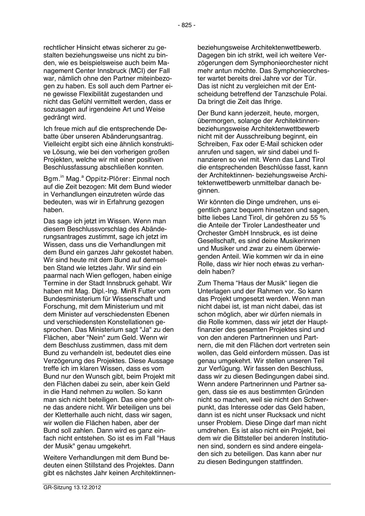 gibt es nächstes Jahr keinen ArchitektinnenGR-Sitzung 13.12.2012