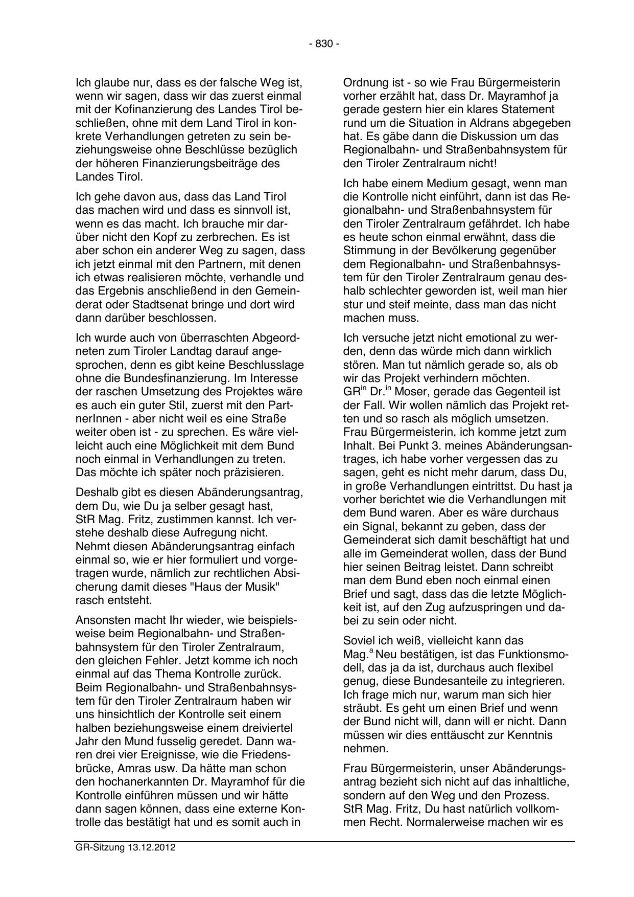 Jahr den Mund fusselig geredet. Dann waren drei vier Ereignisse, wie die Friedensbrücke, Amras usw. Da hätte man schon