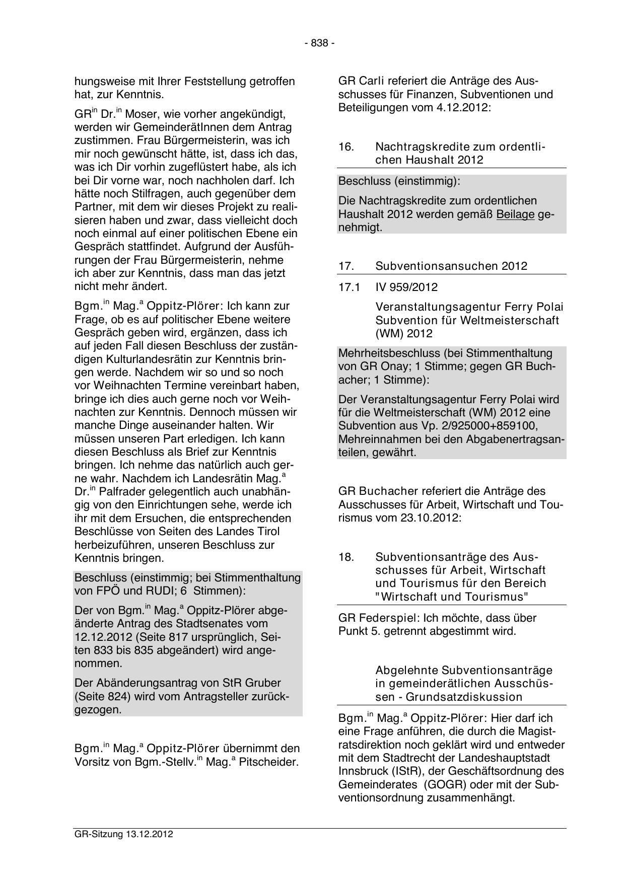 12.12.2012 (Seite 817 ursprünglich, Seiten 833 bis 835 abgeändert) wird angenommen.