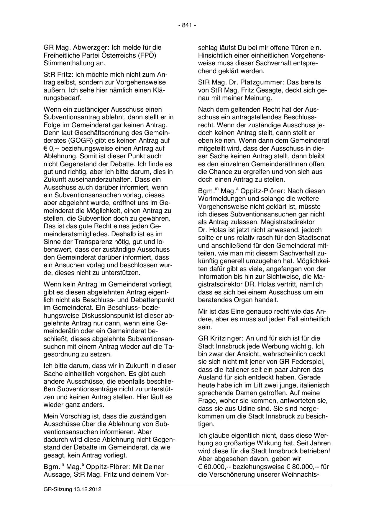 Aussage, StR Mag. Fritz und deinem VorGR-Sitzung 13.12.2012