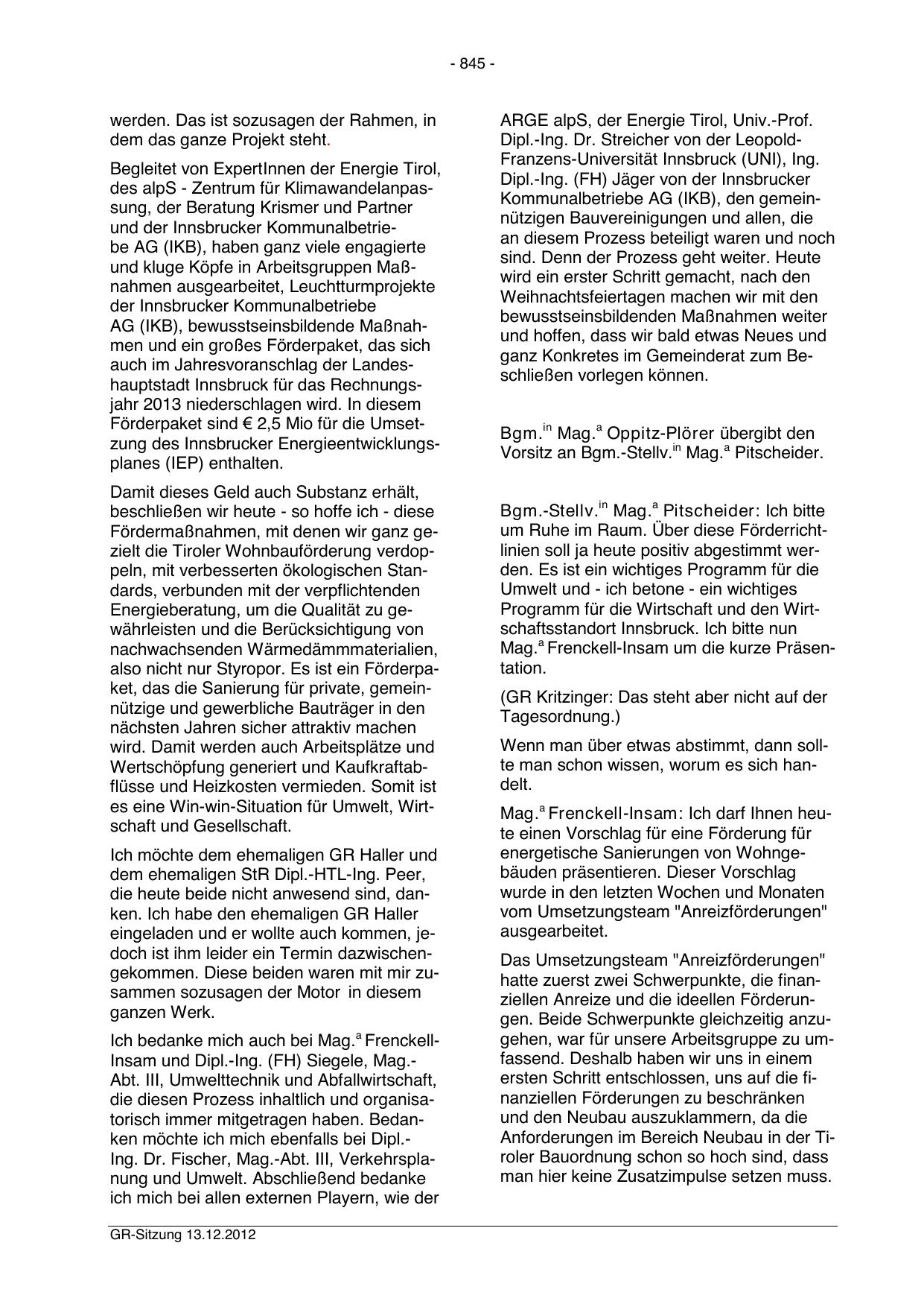 auch im Jahresvoranschlag der Landeshauptstadt Innsbruck für das Rechnungsjahr 2013 niederschlagen wird. In diesem