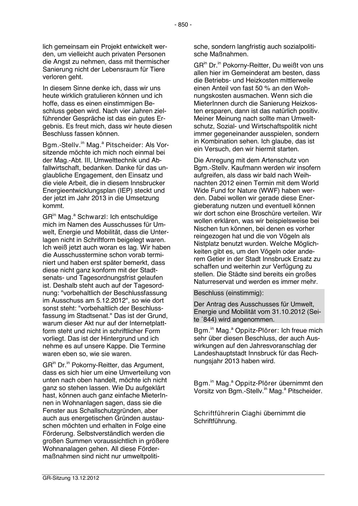 Wohnanalagen gehen. All diese Fördermaßnahmen sind nicht nur umweltpolitiGR-Sitzung 13.12.2012