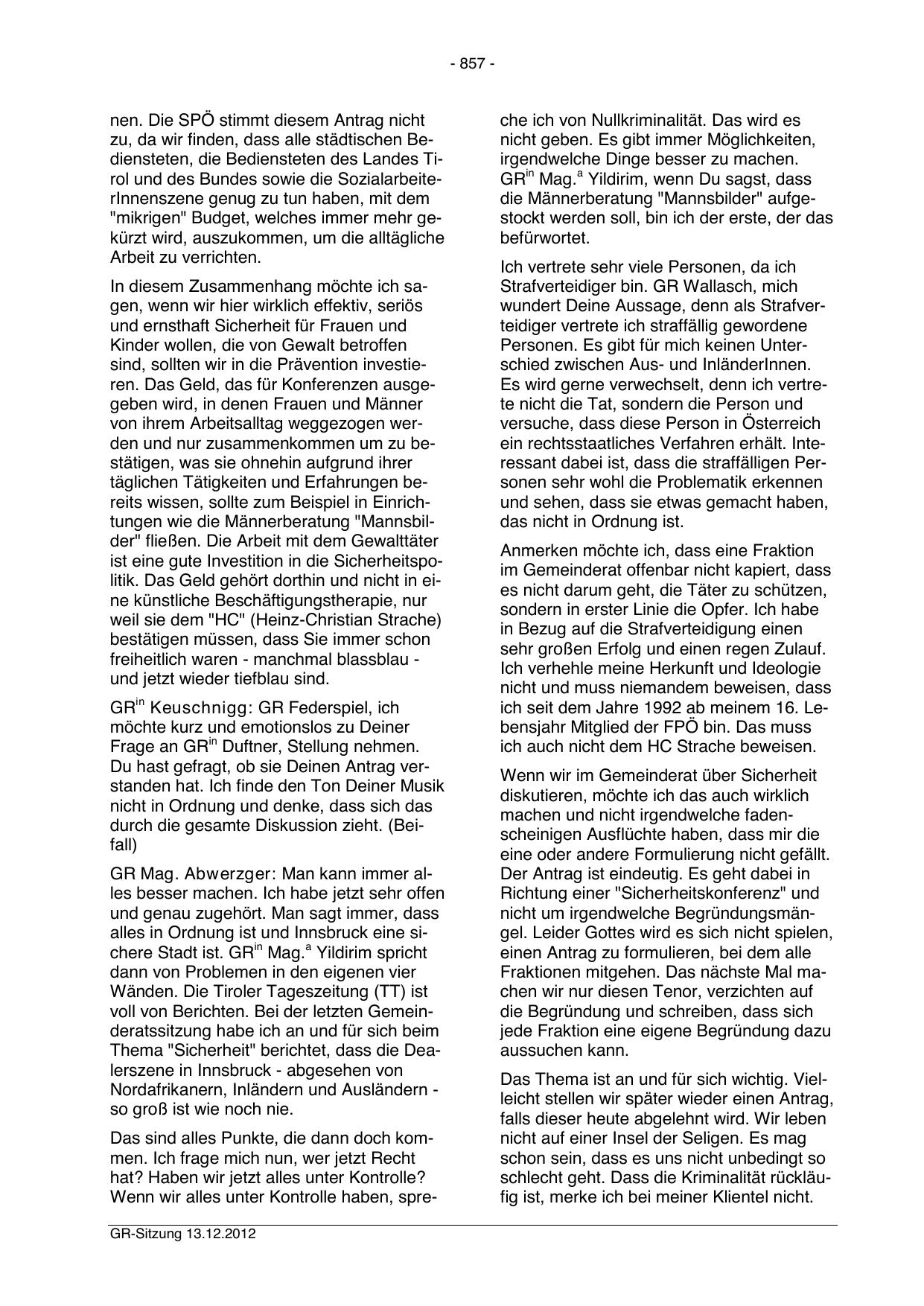 alles in Ordnung ist und Innsbruck eine sichere Stadt ist. GRin Mag.a Yildirim spricht
