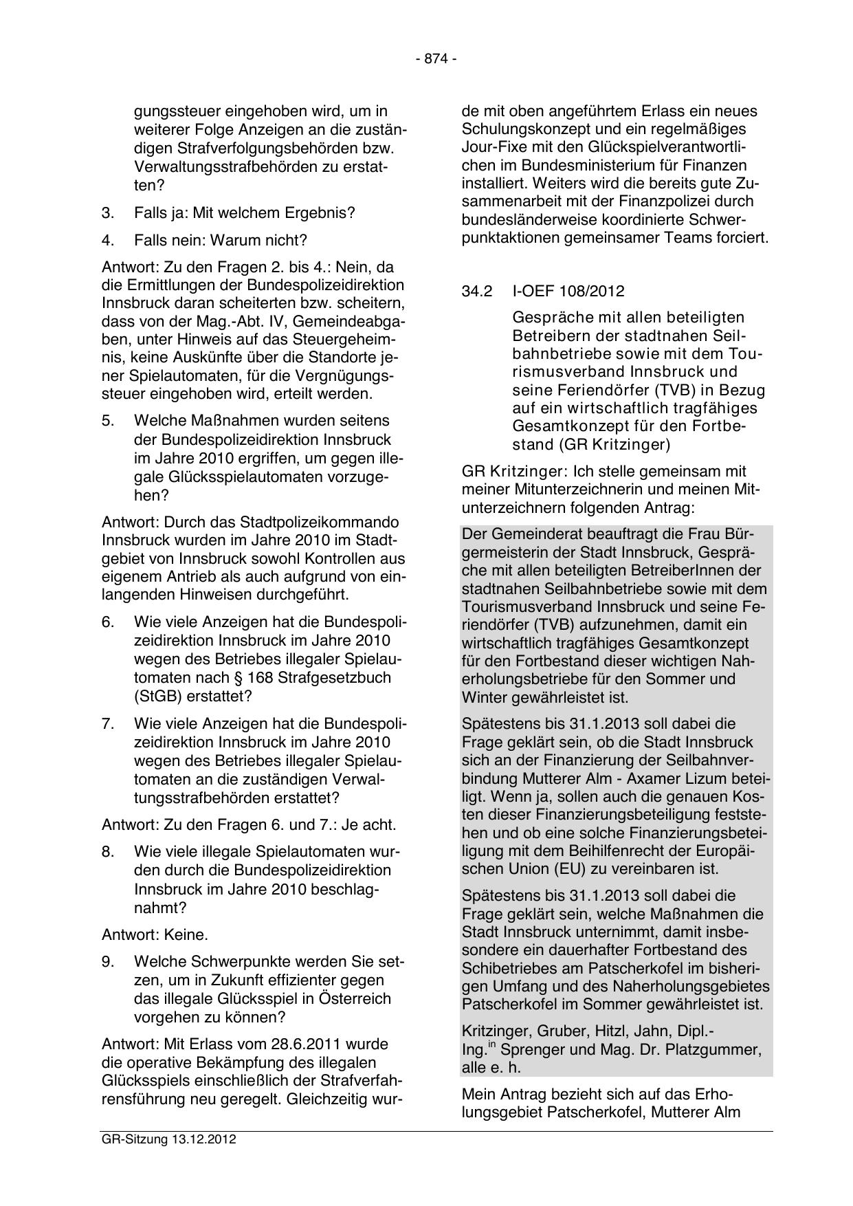 Glücksspiels einschließlich der Strafverfahrensführung neu geregelt. Gleichzeitig wurGR-Sitzung 13.12.2012