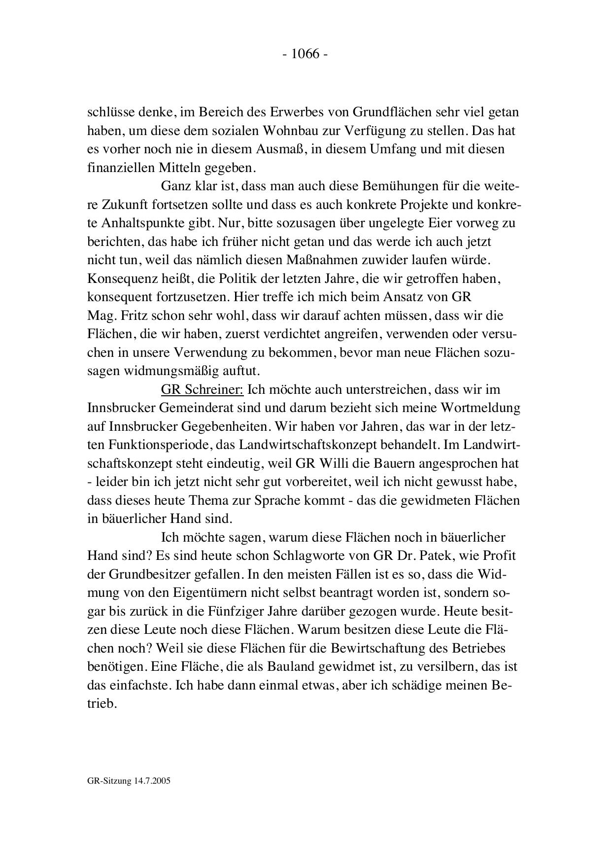 auf Innsbrucker Gegebenheiten. Wir haben vor Jahren, das war in der letzten Funktionsperiode, das Landwirtschaftskonzept behandelt. Im Landwirtschaftskonzept steht eindeutig, weil GR Willi die Bauern angesprochen hat